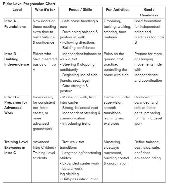 Intro C is flexible, allowing riders to grow into Training Level skills safely